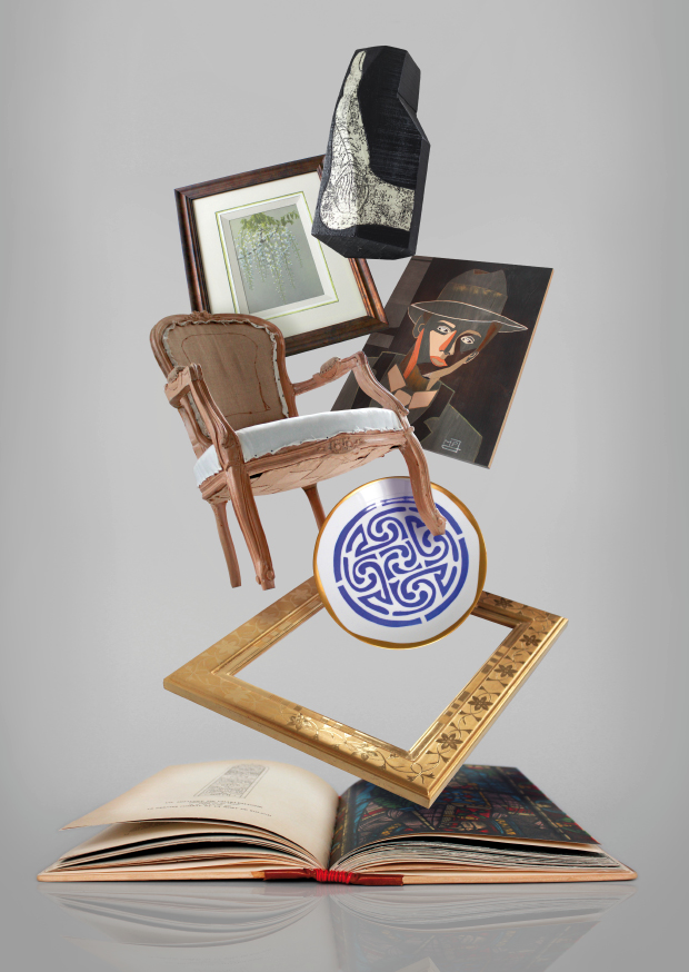 Exposition collective des ateliers de dorure sur bois, encadrement, reliure, marqueterie, peinture sur porcelaine et restauration de sièges avec Jean-Marc Vachter, artiste plasticien.