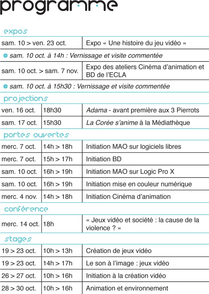 L’ECLA désire donc souligner la richesse du milieu numérique par la programmation d’événements pluridisciplinaires et la mise en valeur de son savoir-faire dans le domaine par l’entremise d’événements de portes-ouvertes, de séances d’initiation et de stages.